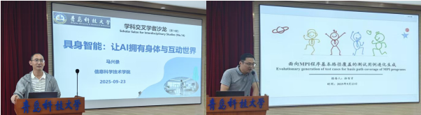 本期沙龙以“交叉视角下的智能系统:从感知、交互到验证”为主题,邀请了三位学者进行精彩分享。马兴录教授作题为《具身智能:让AI拥有身体与互动世界》的报告,探讨了具身智能的发展前景;田皓宇副教授分享了《基于骨架数据的人体行为识别与异常步态分析》,展示了智能感知在行为识别中的应用;孙百才副教授带来了《面向MPI程序基本路径覆盖的测试用例进化生成》报告,介绍了程序验证与测试的新方法。