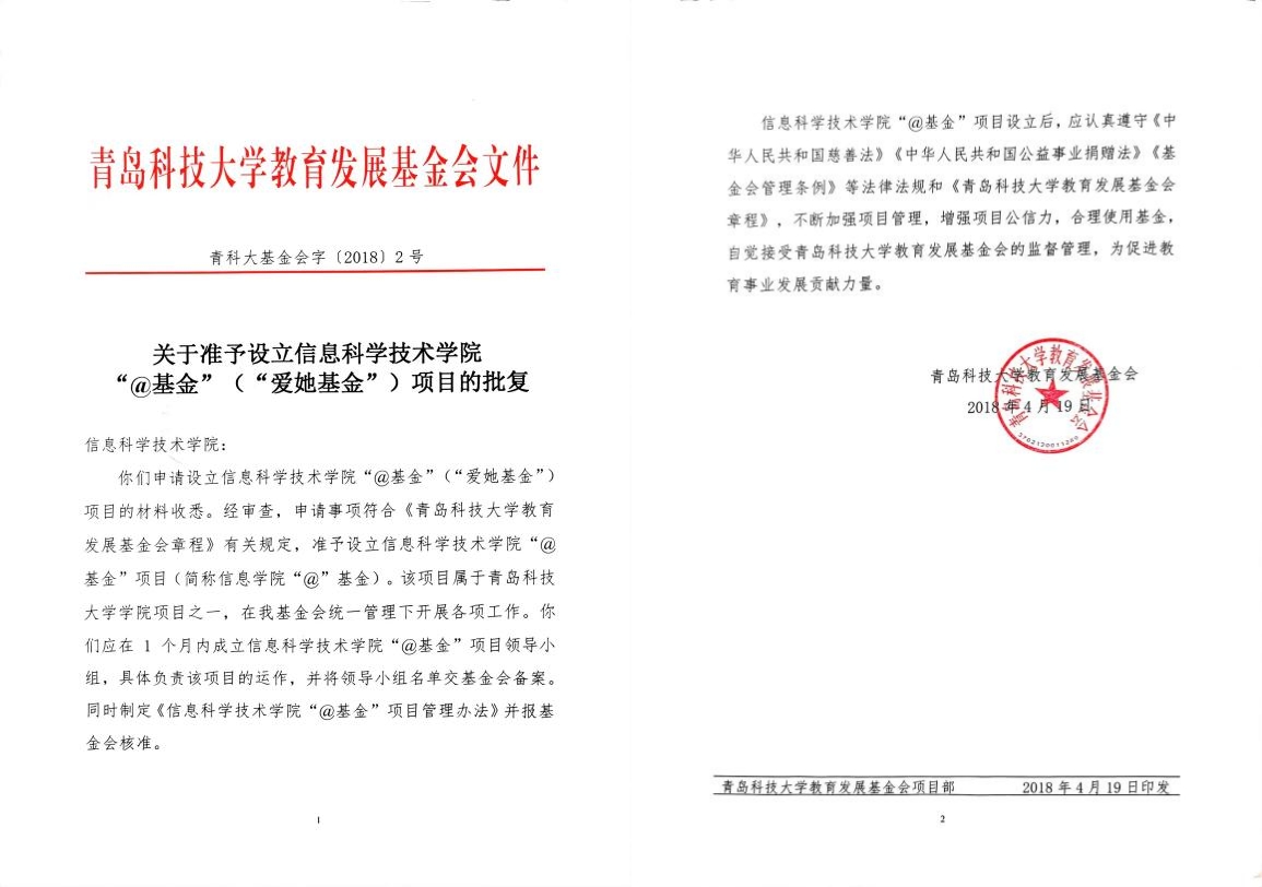 2018年4月19日,经学院申请提交“@基金”(“爱她基金”)项目材料,学校教育发展基金会同意设立成人影视片