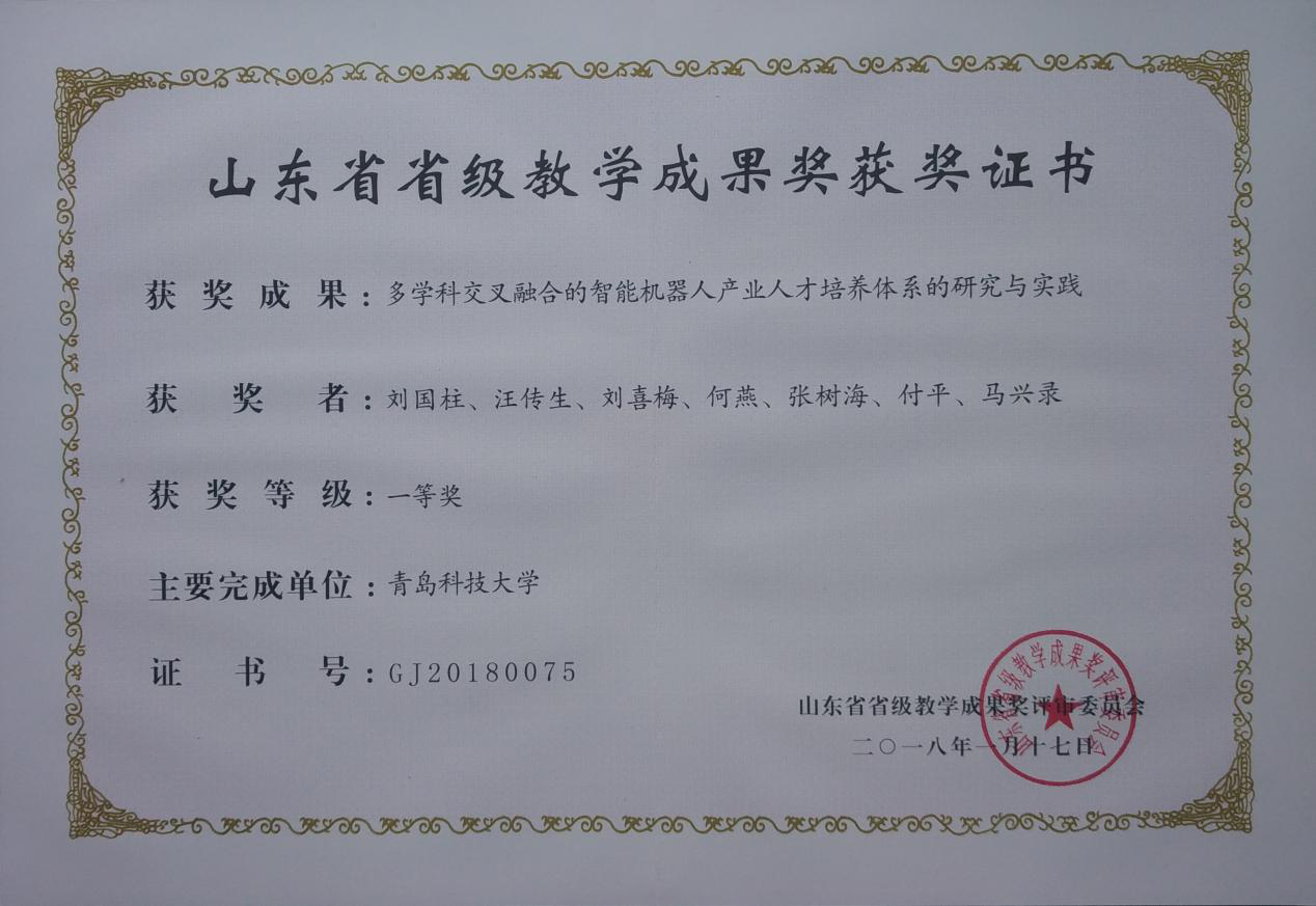 6、山东省教学成果奖--多学科交叉融合的智能机器人产业人才培养体系的研究与实践
