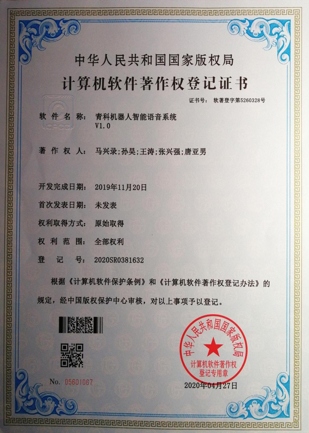 10、软件著作权--青科桌面机械臂语音控制系统V1.0