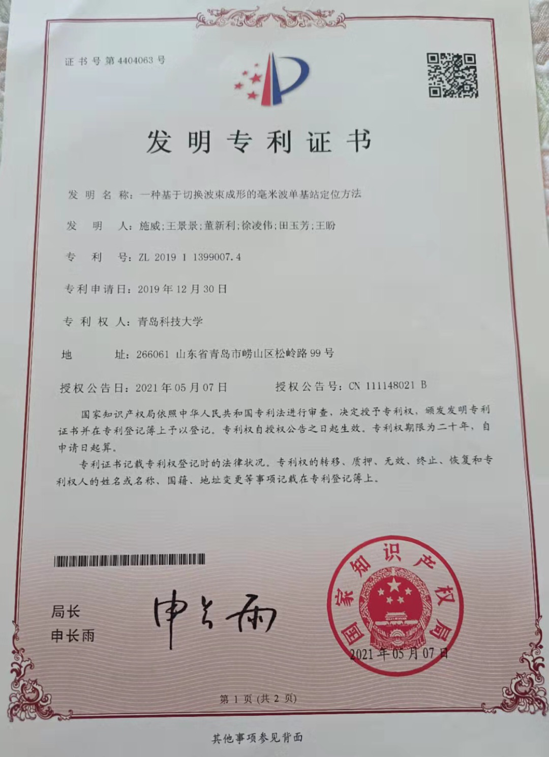 3、发明专利--一种基于切换波束成型的毫米波单基站定位方法