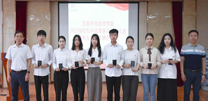 在学院楼402会议室举行2022届校友年级理事会成立大会暨校友信息员聘任仪式。院长刘国柱、党委副书记兼副院长王军、团委书记兼学工办主任曲智强、成人影视片